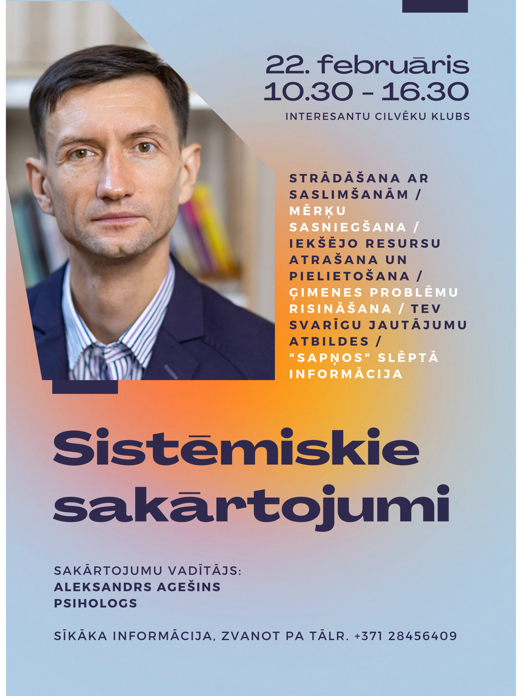 Aicinām uz sistēmisko sakārtojumu semināru, kurā kopā ar pieredzējušu psihologu būs iespēja: